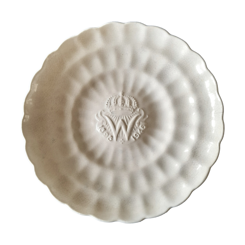 Crèmekleurige porseleinen rimpelschotel/ wandbord van Porceleyne Fles Delft.