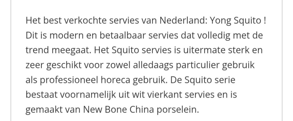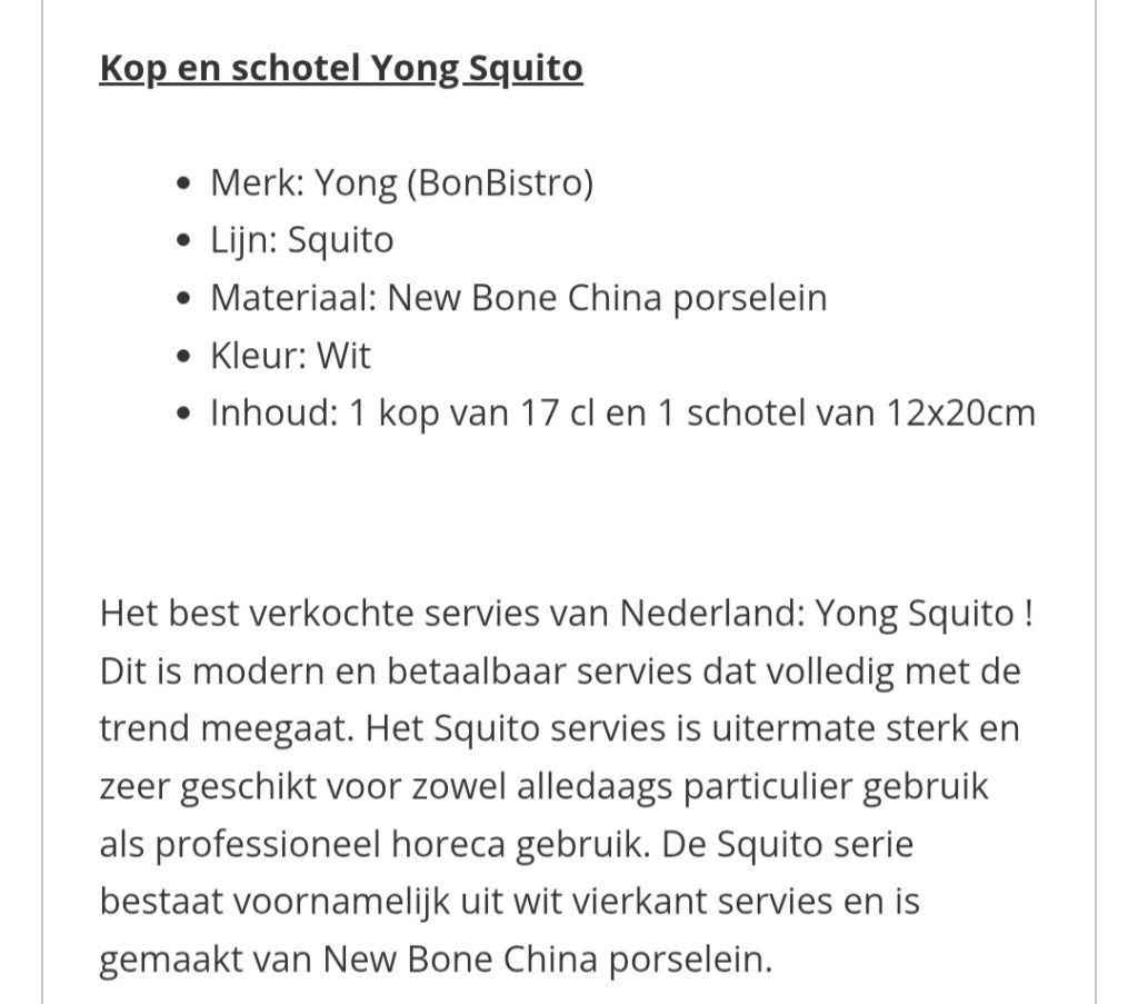 De Squito serie is gemaakt van New Bone China porselein.