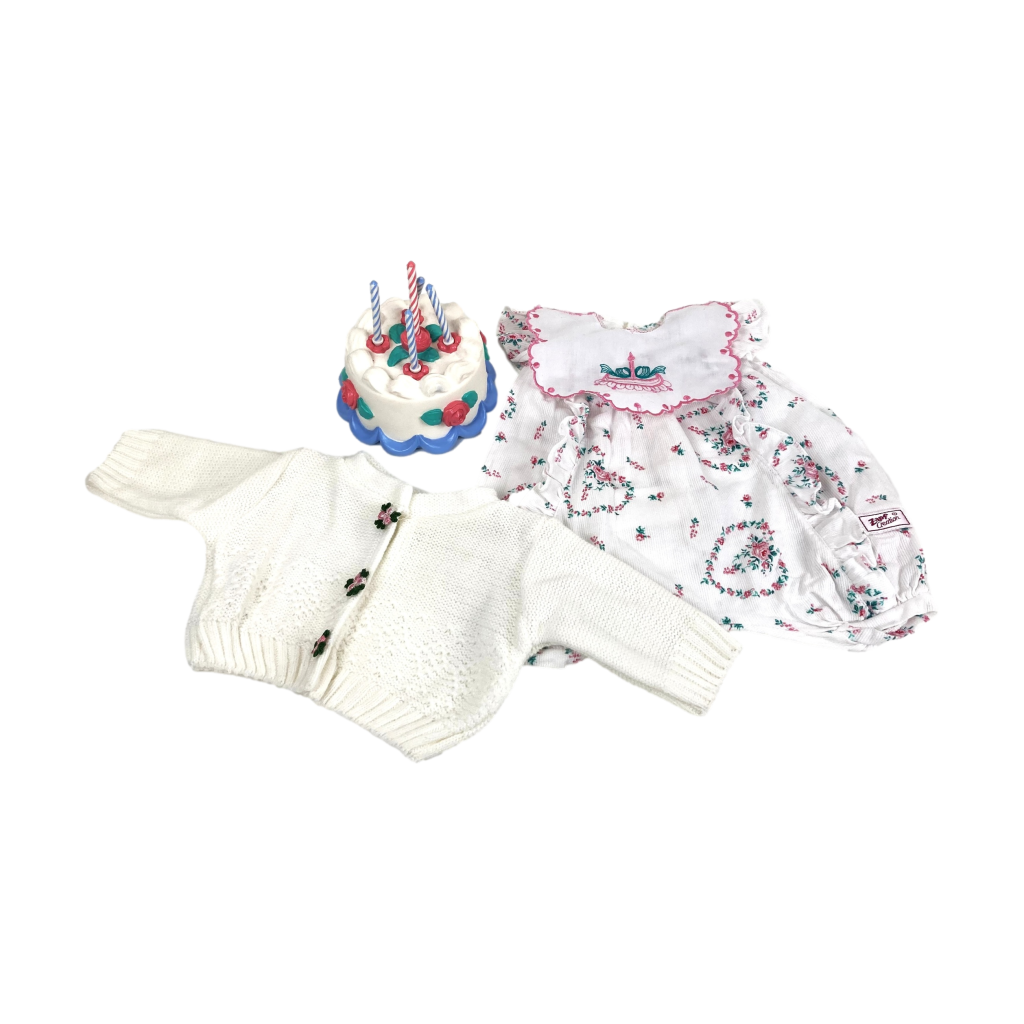 Vintage Baby Born verjaardags poppen kleding setje voor pop van 43 cm. Merk: Zapf. Met roosjes motief.