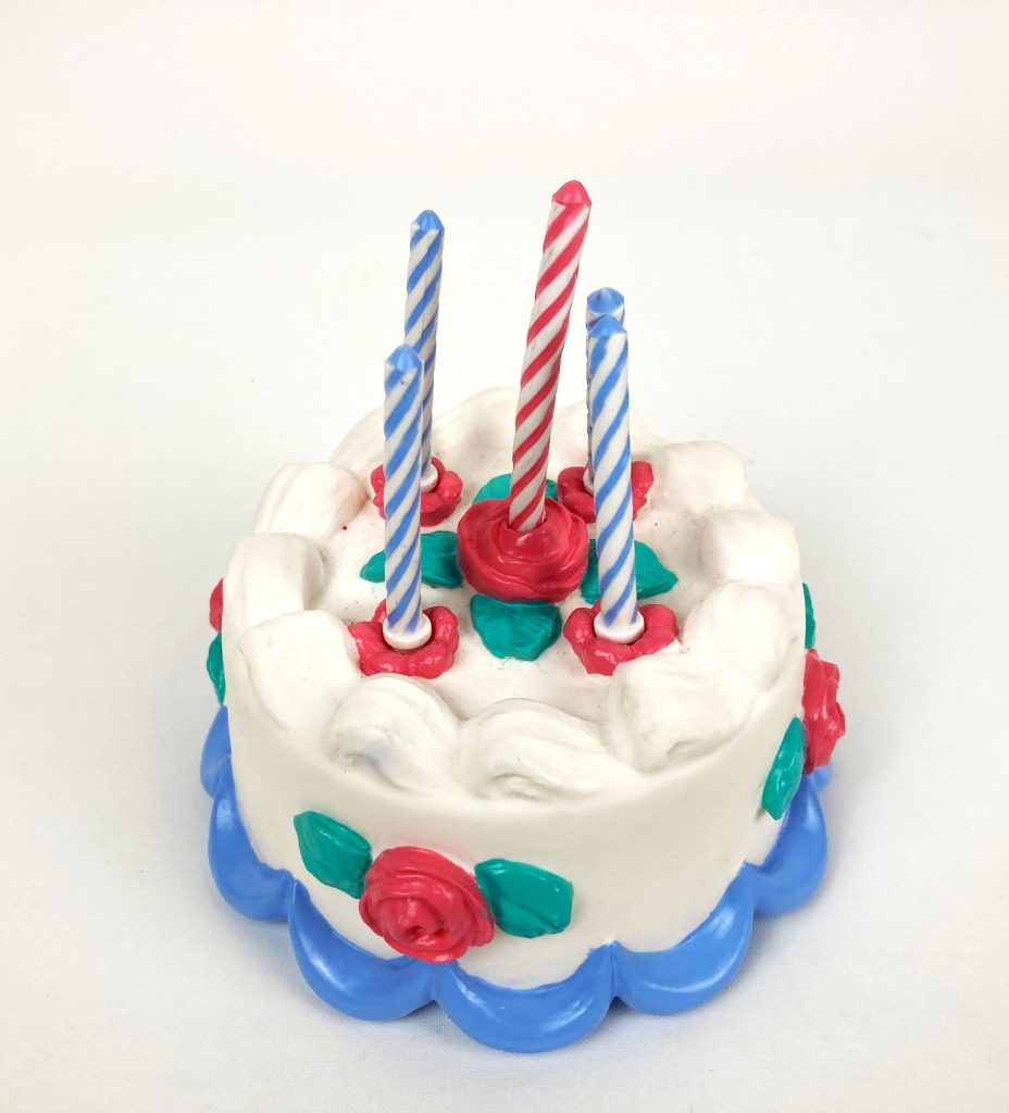 Lengte slobpakje: 30 cm. Bestaande uit een slobpakje en verjaardagstaart (werking niet bekend).